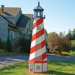 Decorative lighthouses from Quality Nautical Decor are made from top-quality sideboard plywood or durable poly material. Wood lighthouses are painted with exterior-grade paint to protect against weathering.